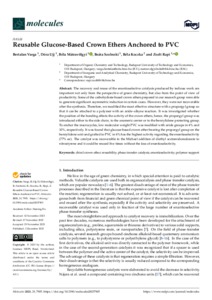 The recovery and reuse of the enantioselective catalysts produced by tedious work are important not only from the perspective of green chemistry, but also from the point of view of productivity. Some of the carbohydrate-based crown ethers prepared in our research group were able to gen-erate significant asymmetric induction in certain cases. However, they were not recoverable after the synthesis. Therefore, we modified the most effective structure with a propargyl group so that it can be attached to a polymer with azide-alkyne reaction. It was investigated whether the position of the bonding affects the activity of the crown ethers, hence, the propargyl group was introduced either to the side chain, to the anomeric center or to the benzylidene protecting group. To anchor the macrocycles, low molecular weight PVC was modified with azide groups in 4% and 10%, respectively. It was found that glucose-based crown ether bearing the propargyl group on the benzylidene unit and grafted to PVC in 4% has the highest activity regarding the enantioselectivity (77% ee). The catalyst was recoverable in the Michael addition of diethyl acetamidomalonate to nitrostyrene and it could be reused five times without the loss of enantioselectivity.