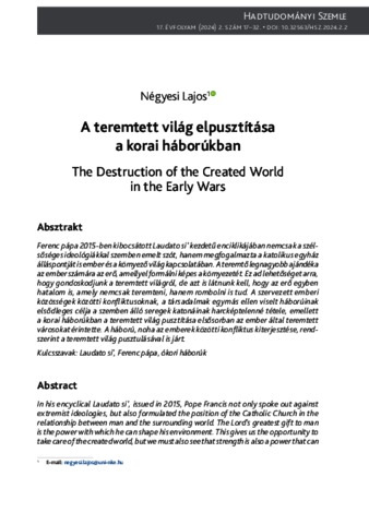 Négyesi, Lajos (2024) A teremtett világ elpusztítása a korai háborúkban. HADTUDOMÁNYI SZEMLE, 17 (2). pp. 17-32. ISSN 2676-9816