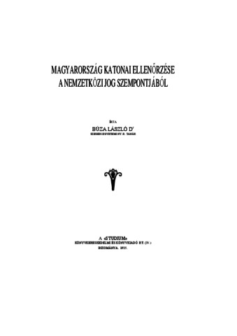 Buza, László (1925) Magyarország katonai ellenőrzése a nemzetközi jog szempontjából. Studium, Budapest.