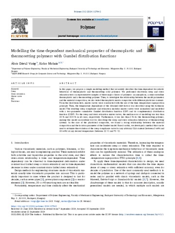 Virág, Ábris Dávid and Molnár, Kolos (2024) Modelling the time-dependent mechanical properties of thermoplastic and thermosetting polymers with Gumbel distribution functions. POLYMER, 312. No. 127642. ISSN 00323861