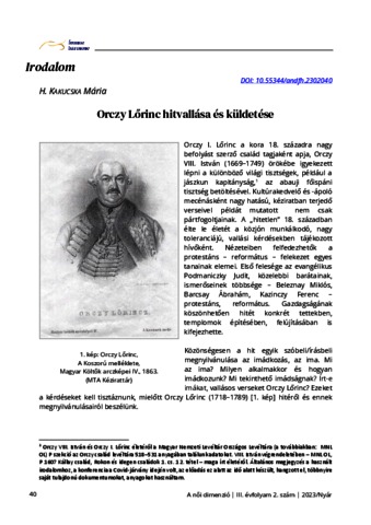 H. Kakucska, Mária (2023) Orczy Lőrinc hitvallása és küldetése. A NŐI DIMENZIÓ: A KORTÁRS NŐI REFLEXIÓK FÓRUMÁNAK FOLYÓIRATA, 3 (2). pp. 40-50. ISSN 2786-3905