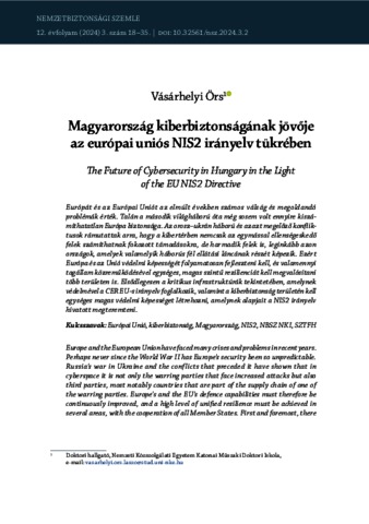 Vásárhelyi, Örs László (2024) Magyarország kiberbiztonságának jövője az európai uniós NIS2 irányelv tükrében = The Future of Cybersecurity in Hungary in the Light of the EU NIS2 Directive. NEMZETBIZTONSÁGI SZEMLE (ONLINE), 12 (3). pp. 18-35. ISSN 2064-3756