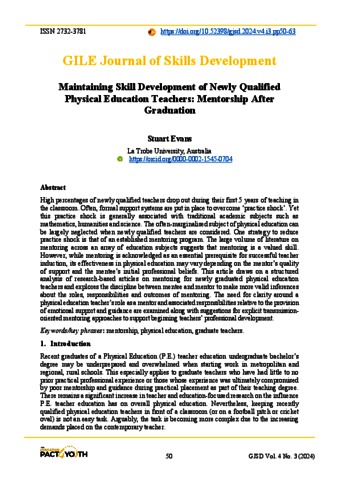 Evans, Stuart (2024) Maintaining Skill Development of Newly Qualified Physical Education Teachers. GILE JOURNAL OF SKILLS DEVELOPMENT, 4 (3). pp. 50-63. ISSN 2732-3781