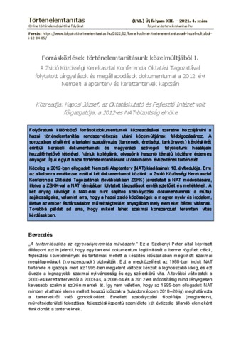 Kaposi, József (2021) Forrásközlések történelemtanításunk közelmúltjából I. : A Zsidó Közösségi Kerekasztal Konferencia Oktatási Tagozatával folytatott tárgyalások és megállapodások dokumentumai a 2012. évi Nemzeti alaptanterv és kerettantervek kapcsán. TÖRTÉNELEMTANÍTÁS: ONLINE TÖRTÉNELEMDIDAKTIKAI FOLYÓIRAT, 12 (4). ISSN 2061-6260
