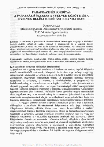 Dobos, Csilla (2008) Parafrázis és fordítás. A parafrázis szerepe a nyelvek közötti és a nyelven belüli fordítási folyamatban. ALKALMAZOTT NYELVÉSZETI KÖZLEMÉNYEK, 3 (1). pp. 53-66. ISSN 1788-9979