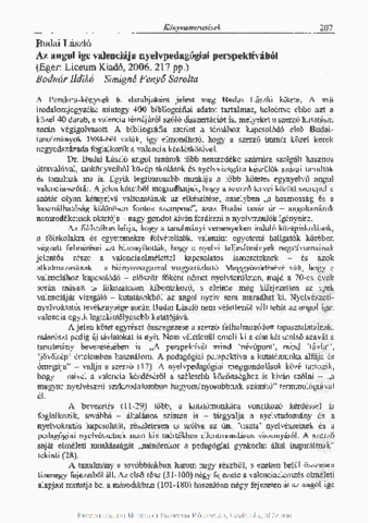 Bodnár, Ildikó and Simigné Fenyő, Sarolta (2008) Budai László : Az angol ige valenciája nyelvpedagógiai perspektívából. ALKALMAZOTT NYELVÉSZETI KÖZLEMÉNYEK, 3 (1). pp. 207-210. ISSN 1788-9979