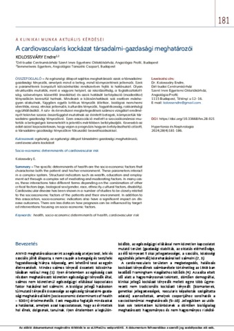 Kolossváry, Endre (2024) A cardiovascularis kockázat társadalmi-gazdasági meghatározói = Socio-economic determinants of cardiovascular risk. HYPERTONIA ÉS NEPHROLOGIA, 28 (4). pp. 181-186. ISSN 1418-477X