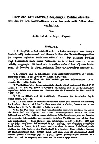 Kalmár, László (1933) Über die Erfüllbarkeit derjenigen Zählausdrücke, welche in der Normalform zwei benachbarte Allzeichen enthalten. MATHEMATISCHE ANNALEN, 108. pp. 466-484. ISSN 0025-5831