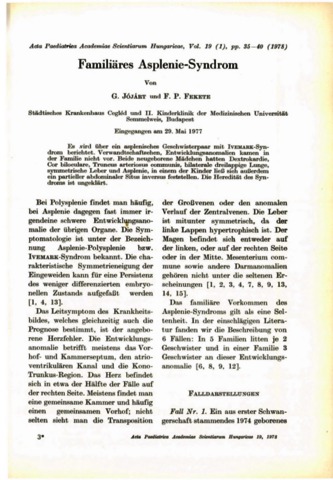 Jójárt, G. and Fekete, F. P. (1978) Familiäres Asplenie-Syndrom. ACTA PAEDIATRICA, 19 (1). pp. 35-40.