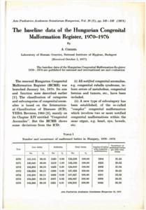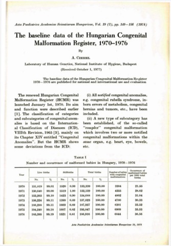 Czeizel, A. (1978) The baseline data of the Hungarian Congenital Malformation Register, 1970-1976. ACTA PAEDIATRICA, 19 (2). pp. 149-156.