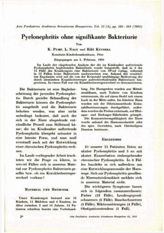Pump, K. and Nagy, L. and Kucsera, Edit (1981) Pyelonephritis ohne signifikante Bakteriurie. ACTA PAEDIATRICA, 22 (4). pp. 285-291.