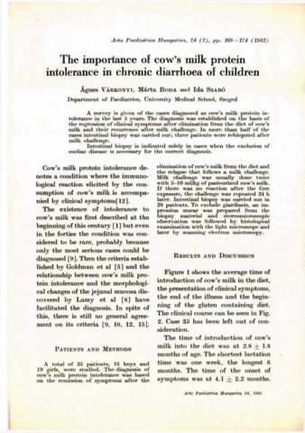 Várkonyi, Ágnes and Boda, Márta and Szabó, Ida (1983) The importance of cow’s milk protein intolerance in chronic diarrhoea of children. ACTA PAEDIATRICA, 24 (2). pp. 169-174.