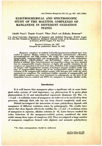 NAGY, L and Gajda, Tamás and Páli, Tibor and Burger, Kálmán (1988) Electrochemical and sepctroscopic studies of manganese complexes of maltitol in different oxidation state. ACTA CHIMICA HUNGARICA, 125 (3). pp. 403-414. ISSN 0231-3146