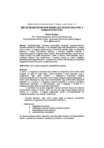 Tanulmányomban elsősorban pszichológiai szempontú metaforaértelmezési modellek áttekintésére vállalkozom, és azt vizsgálom, hogy azok alkalmazhatók-e a romani nyelv esetében. A dolgozat elméleti keretét a következő modellek adják: az idiómalista hipotézis, a lexikai reprezentációs hipotézis, a közvetlen hozzáférés modellje, a kompozíciós modell és a fogalmi ötvözés elmélete. Ezek kritikai áttekintése után kerül sor a romani nyelvből vett példák bemutatására. Lakoff és Johnson (1980) kimutatta, hogy a metaforák többnyire nem díszítőelemei a nyelvnek, hanem az emberi analogikus gondolkodásmód megnyilvánulásai. A romani nyelv esetében valószínűleg ezen aspektusok vizsgálatával érhetı tetten nyelv és kultúra kapcsolata.