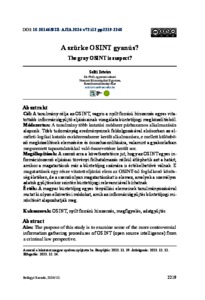 Cél: A tanulmány célja az OSINT, vagyis a nyílt forrású hírszerzés egyes vitatottabb információgyűjtő eljárásainak vizsgálata büntetőjogi megközelítésből. Módszertan: A tanulmány több kutatási módszer párhuzamos alkalmazásán alapszik. Több tudományág eredményeinek feldolgozásával elsősorban az elméleti-logikai kutatás eszközrendszere került alkalmazásra, e mellett különböző megközelítések elemzésére és összehasonlítására, valamint a gyakorlatban megszerzett tapasztalatokkal való összevetésre került sor. Megállapítások: A szerző arra a következtetésre jut, hogy az OSINT egyes információszerző eljárásai törvényi felhatalmazás nélkül átléphetik azt a határt, amikor a magatartások már a bűntetőjog számára is értékelhetővé válnak. E magatartások egy része vitatott eljárási elem az OSINT-tal foglalkozó közösség életében, de a szerző olyan magatartásokat is elemez, amelyek a személyes adatok gyűjtésekor szintén büntetőjogi relevanciával bírhatnak. Érték: A magyar büntetőjog egyes tényállási elemeinek tanulmányozásával mutat ki olyan elkövetési módokat, amik az információgyűjtés bűntetőjogi minősítését alapozhatják meg. | Aim: The purpose of this study is to examine some of the more controversial information gathering procedures of OSINT (open source intelligence) from a criminal law perspective.Methodology: The study is based on the parallel application of several research methods. Primarily, the tool system of theoretical-logical research was applied, by processing the results of several disciplines, in addition to analysing and comparing different approaches, as well as comparing them with experiences gained in practice.Findings: The author comes to the conclusion that some information-gathering procedures of OSINT can cross the line without legal authorization, when the behaviour becomes appreciable even for criminal law. Some of these behaviours are a controversial procedural element in the life of the OSINT community, but the author also analyses behaviours that may also have criminal law relevance when collecting personal data.Value: By studying some factual elements of the Hungarian criminal law, it shows ways of committing crimes that can be the basis for the criminal classification of information gathering.