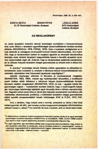 Bánfai, B. and Bodor, Péter and László, János (1986) Az iskolaköpeny. PSZICHOLÓGIA (MTA PSZICHOLÓGIAI INTÉZET), 6 (3). pp. 435-447. ISSN 0230-0508
