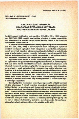 Helson, Ravenna M. and Leigh, Janet (1986) A pszichológiai irányulás és a társas interakciók mintázata magyar és amerikai novellákban. PSZICHOLÓGIA (MTA PSZICHOLÓGIAI INTÉZET), 6 (4). pp. 511-532. ISSN 0230-0508