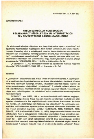 Szummer, Csaba (1987) Freud szimbólum-koncepciója : félbemaradt kísérlet egy új interpretációs elv bevezetésére a pszichoanalízisbe. PSZICHOLÓGIA (MTA PSZICHOLÓGIAI INTÉZET), 7 (4). pp. 567-583. ISSN 0230-0508