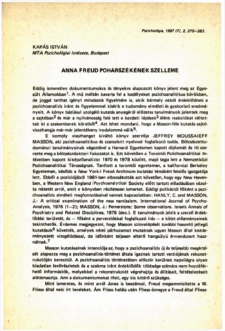 Kapás, István (1987) Anna Freud pohárszékének szelleme. PSZICHOLÓGIA (MTA PSZICHOLÓGIAI INTÉZET), 7 (2). pp. 270-283. ISSN 0230-0508