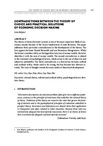 The theory of choice between variants is one of the most important fields of economics mainly because of the future implications of such decisions. The paperaddresses three particular contradictions in the development of the theory. Thefirst appears between Daniel Bernoulli and von Neumann–Morgenstern. Whilethe former considers utility as the logarithm function of money wealth, the latteridentifies it with the sum of money wealth. The second contradiction is relatedto the treatment of psychological factors, which arises in the use of objective andsubjective probability. The third contradiction is a distinction between ordinaland cardinal utility, which used to be strong, but has become less relevant recently. The train of thought reveals the main nodes of theoretical development.