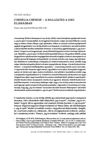 Pethő, Nóra (2024) Cordelia csendje : a hallgatás a jogi eljárásban. ÁLLAM- ÉS JOGTUDOMÁNY, 65 (4). pp. 121-144. ISSN 0002-564X