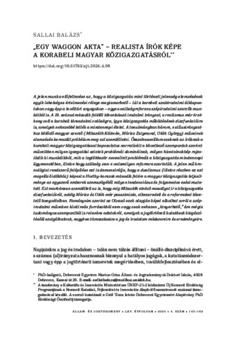 Sallai, Balázs (2024) „Egy waggon akta” : realista írók képe a korabeli magyar közigazgatásról. ÁLLAM- ÉS JOGTUDOMÁNY, 65 (4). pp. 145-162. ISSN 0002-564X