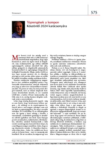 Kapócs, Gábor (2024) Töprengések a kompon : Köszöntő 2024 karácsonyára. LEGE ARTIS MEDICINAE, 34 (12). pp. 575-579. ISSN 0866-4811