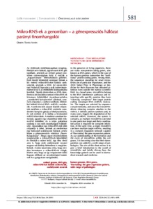 Az élőlények örökítőanyagában rengeteg, fehérjét nem kódoló, úgynevezett RNS gén található, amelyek az emberi genom esetében számosságban felül is múlják a „hagyományos” fehérjekódoló géneket. Ezek között kitüntetett szereppel bírnak a kis méretű mikro-RNS-eket kódoló szekvenciák, amelyek a 2024. évi orvosi-élettani Nobel-díj kapcsán a szűk tudományterületen kívül is az érdeklődés középpontjába kerültek. | In the genomes of living organisms, there are many non-protein-coding genes, also known as RNA genes, which in the case of the human genome outnumber the “traditional” protein-coding genes. Among these, the sequences encoding for small microRNAs are of particular importance, and the 2024 Nobel Prize in Physiology or Medicine for their discovery has attracted attention even outside the narrow scientific field. In a broad sense, microRNAs belong to the RNA interference pathways and interacting with specific proteins they form “silencing complexes” that target protein coding messenger RNA (mRNA) molecules. The targets are selected by sequence complementarity, and once the microRNA-driven silencing complex attaches to the mRNA, it inhibits protein synthesis and, in many cases, triggers the degradation of the selected mRNA. However, the system is complex, as multiple microRNAs can bind to one particular target and their coordinated action is required for complete inhibition. At the same time, a single microRNA can have multiple target mRNAs, resulting in a complex regulatory network capable of ‘fine-tuning’ the gene expression pattern. As our understanding of the formation and life cycle of microRNAs within the cell grows, it is becoming clear that their dysregulation can underlie a wide range of pathologies. The aim of this short review is to give a brief introduction to the world of microRNAs and briefly discuss how the knowledge gained can be used in biomedical research and medicine.