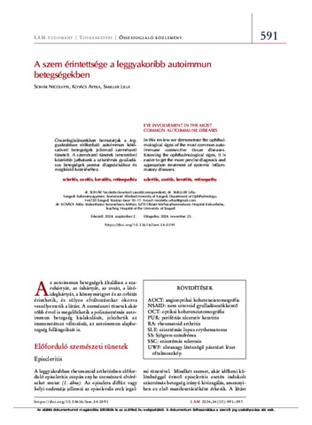 Sohár, Nicolette and Kovács, Attila and Smeller, Lilla (2024) A szem érintettsége a leggyakoribb autoimmun betegségekben = Eye involvement in the most common autoimmune diseases. LEGE ARTIS MEDICINAE, 34 (12). pp. 591-597. ISSN 0866-4811