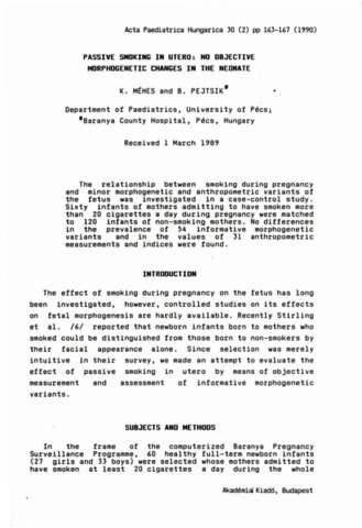 Méhes, K. and Pejtsik, B. (1990) Passive Smoking in Utero : No Objective Morphogenetic Changes in The Neonate. ACTA PAEDIATRICA, 30 (2). pp. 163-167.