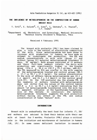 Ertl, T. and Sulyok, E. and Ezer, E. and Sárkány, I. and Thurzó, V. and Csaba, I. F. (1991) The influence of metoclopramide on the composition of human breast milk. ACTA PAEDIATRICA, 31 (4). pp. 415-422.