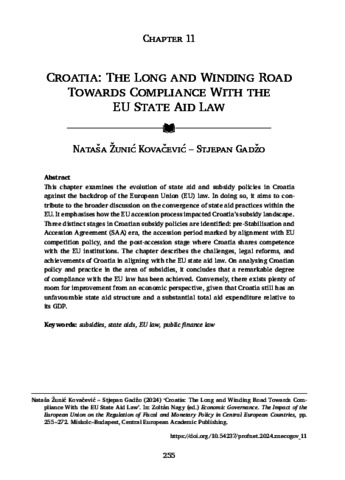 Kovačević, Nataša Žunić and Gadžo, Stjepan (2024) Croatia: The Long and Winding Road Towards Compliance With the EU State Aid Law. In: Economic Governance. Studies of the Central European Professors’ Network . Central European Academic Publishing, Miskolc, Budapest, pp. 255-272. ISBN 9786156474452; 9786156474469; 9786156474476