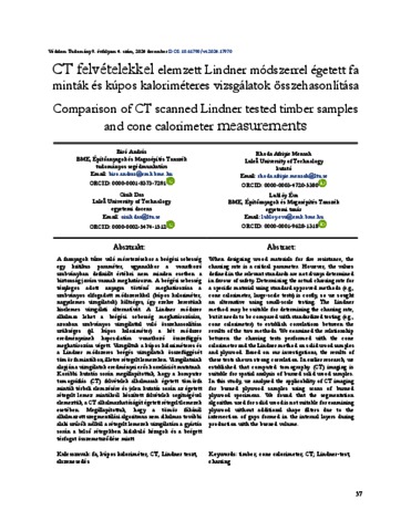 | Uncontrolled Keywords: | fa, kúpos kaloriméter, CT, Lindner teszt, elszenesedés | timber; cone calorimeter; CT; Lindner-test; charring |