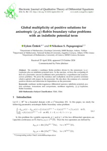 Öztürk, Eylem and Papageorgiou, Nikolaos (2024) Global multiplicity of positive solutions for anisotropic $(p,q)$-Robin boundary value problems with an indefinite potential term. Electronic Journal of Qualitative Theory of Differential Equations, 2024 (58). pp. 1-25. ISSN 1417-3875