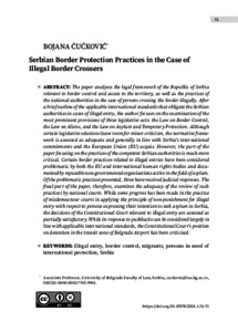 The paper analyses the legal framework of the Republic of Serbia relevant to border control and access to the territory, as well as the practices of the national authorities in the case of persons crossing the border illegally. After a brief outline of the applicable international standards that obligate the Serbian authorities in cases of illegal entry, the author focuses on the examination of the most prominent provisions of three legislative acts: the Law on Border Control, the Law on Aliens, and the Law on Asylum and Temporary Protection. Although certain legislative solutions leave room for minor criticism, the normative framework is assessed as adequate and generally in line with Serbia’s international commitments and the European Union (EU) acquis. However, the part of the paper focusing on the practices of the competent Serbian authorities is much more critical. Certain border practices related to illegal entries have been considered problematic by both the EU and international human rights bodies and documented by reputable non-governmental organisations active in the field of asylum. Of the problematic practices presented, three have received judicial responses. The final part of the paper, therefore, examines the adequacy of the review of such practices by national courts. While some progress has been made in the practice of misdemeanour courts in applying the principle of non-punishment for illegal entry with respect to persons expressing their intention to seek asylum in Serbia, the decisions of the Constitutional Court relevant to illegal entry are assessed as partially satisfactory. While its response to pushbacks can be considered largely in line with applicable international standards, the Constitutional Court’s position on detention in the transit zone of Belgrade Airport has been criticised.