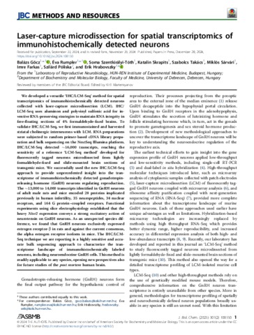 Göcz, Balázs Gergő and Rumpler, Éva and Szentkirályi-Tóth, Soma and Skrapits, Katalin and Takács, Szabolcs Ferenc and Sárvári, Miklós and Farkas, Imre and Póliska, Szilárd and Hrabovszky, Erik (2024) Laser-capture microdissection for spatial transcriptomics of immunohistochemically detected neurons. JOURNAL OF BIOLOGICAL CHEMISTRY, 301 (2). ISSN 0021-9258
