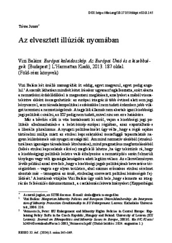 Tóth, Judit (2024) Az elvesztett illúziók nyomában. REGIO: KISEBBSÉG KULTÚRA POLITIKA TÁRSADALOM, 32 (3). pp. 145-149. ISSN 0865-557X