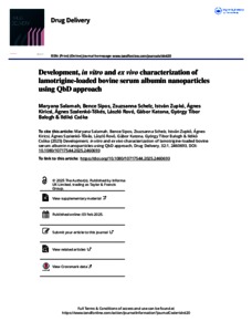 Salamah, Maryana and Sipos, Bence and Schelz, Zsuzsanna and Zupkó, István and Kiricsi, Ágnes and Szalenko-Tőkés, Ágnes and Rovó, László and Katona, Gábor and Balogh, György Tibor and Pannonhalminé Csóka, Ildikó (2025) Development, in vitro and ex vivo characterization of lamotrigine-loaded bovine serum albumin nanoparticles using QbD approach. DRUG DELIVERY : JOURNAL OF DELIVERY AND TARGETING OF THERAPEUTIC AGENTS, 32 (1). No.-2460693. ISSN 1071-7544
