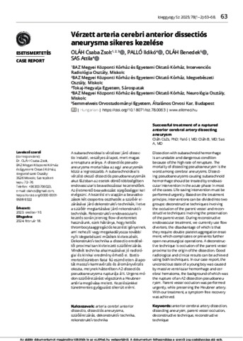 Oláh, Csaba Zsolt and Palló, Ildikó and Oláh, Benedek and Sas, Attila (2025) Vérzett arteria cerebri anterior dissectiós aneurysma sikeres kezelése. IDEGGYOGYASZATI SZEMLE / CLINICAL NEUROSCIENCE, 78 (1-2). pp. 63-68. ISSN 0019-1442