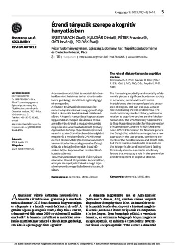 Breitenbach, Zita and Kulcsár, Olívia and Péter, Fruzsina and Gáti, István and Polyák, Éva (2025) Étrendi tényezők szerepe a kognitív hanyatlásban. IDEGGYOGYASZATI SZEMLE / CLINICAL NEUROSCIENCE, 78 (1-2). pp. 5-18. ISSN 0019-1442