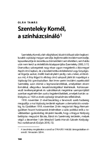 Oláh, Tamás (2024) Szenteleky Kornél, a színházcsináló. HÍD, 88 (1). pp. 144-156. ISSN 0350-9079