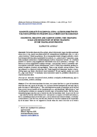 Kappanyos, András (2024) Kognitív, kreatív és kádencia-zóna: az értelemkövetés változó léptéke és felbontása a fordítási folyamatban. ALKALMAZOTT NYELVÉSZETI KÖZLEMÉNYEK, 17 (1). pp. 73-87. ISSN 1788-9979