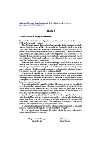 Magnuczné Godó, Ágnes and Pethő, József (2024) Előszó. ALKALMAZOTT NYELVÉSZETI KÖZLEMÉNYEK, 17 (2). p. 5. ISSN 1788-9979