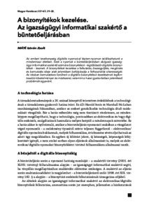 Az emberi tevékenység digitális nyomaival lépten-nyomon találkozhatunk a mindennapi életben. Ezek a nyomok a büntetőeljárásban dolgozó igazságügyi informatikai szakértő számára bizonyítékok – legtöbbször digitális bizonyítékok – lesznek. A bizonyítékok kezelése a felkutatás, összegyűjtés, megőrzés és bemutatás ideje alatt jelentősen befolyásolja a felhasználás sikerességét. Az írásban bemutatásra kerülnek a digitális bizonyítékok kezelésének legfontosabb követelményei és módszerei, valamint a hazai gyakorlatban jelentkező problémák egyaránt.