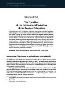Andrékó, Gábor (2024) The Question of the International Isolation of the Russian Federation. NEMZETBIZTONSÁGI SZEMLE (ONLINE), 12 (4). pp. 149-161. ISSN 2064-3756