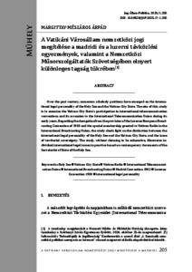 Margittay-Mészáros, Árpád (2025) A Vatikáni Városállam nemzetközi jogi megítélése a madridi és a luzerni távközlési egyezmények, valamint a Nemzetközi Műsorszolgáltatók Szövetségében elnyert különleges tagság tükrében. JOG ÁLLAM POLITIKA: JOG- ÉS POLITIKATUDOMÁNYI FOLYÓIRAT, 17 (1). pp. 205-234. ISSN 2060-4580