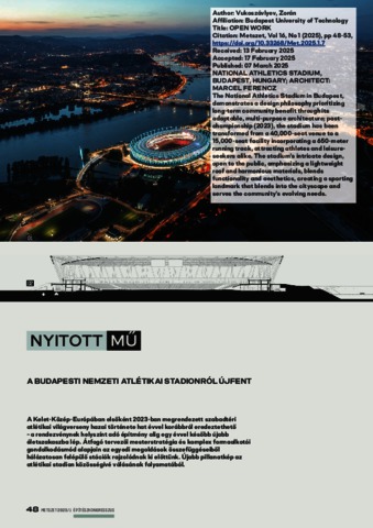 Vukoszávlyev, Zorán (2025) Nyitott mű : A Budapesti Nemzeti Atlétikai Stadionról újfent = Open work : National Athletics Stadium, Budapest, Hungary. METSZET, 16 (1). pp. 48-53. ISSN 2061-2710