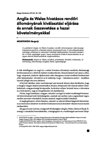 Mogyoródi, Gergely (2016) Anglia és Wales hivatásos rendőri állományának kiválasztási eljárása és annak összevetése a hazai követelményekkel. MAGYAR RENDÉSZET, 16 (6). pp. 93-108. ISSN 1586-2895 (nyomtatott); 1787-050X (elektronikus)
