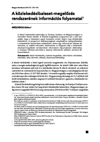 Mészáros, Gábor (2017) A közlekedésibaleset-megelőzés rendszerének információs folyamatai. MAGYAR RENDÉSZET, 17 (2). pp. 129-139. ISSN 1586-2895 (nyomtatott); 1787-050X (elektronikus)