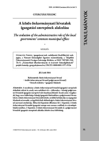 Gyergyák, Ferenc (2024) A közös önkormányzati hivatalok igazgatási szerepének alakulása = The evolution of the administrative role of the local governments’ common municipal offices. COMITATUS: ÖNKORMÁNYZATI SZEMLE, 34 (248). pp. 73-90. ISSN 1215-315X